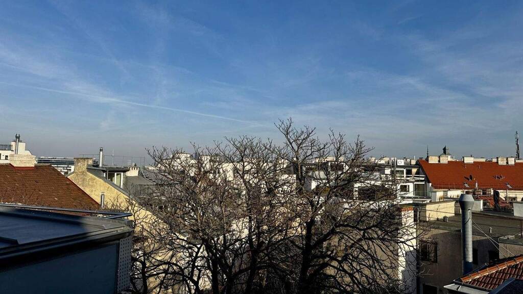 Diese lichtdurchflutete Wohnung liegt im Dachgeschoß eines schönen Wiener Altbaus. Mit dem Lift erreicht man bequem die Wohnung, die auf zwei Ebenen aufgeteilt ist.