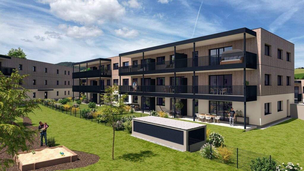 Die Wohnung befindet sich in einer nachhaltigen Wohnanlage in Massivholzbauweise, die für ein angenehmes Raumklima, hohe Energieeffizienz und langlebige Qualität steht. Eine extensive Dachbegrünung und eine Photovoltaikanlage unterstützen die umweltfreundliche Energieversorgung der Anlage.