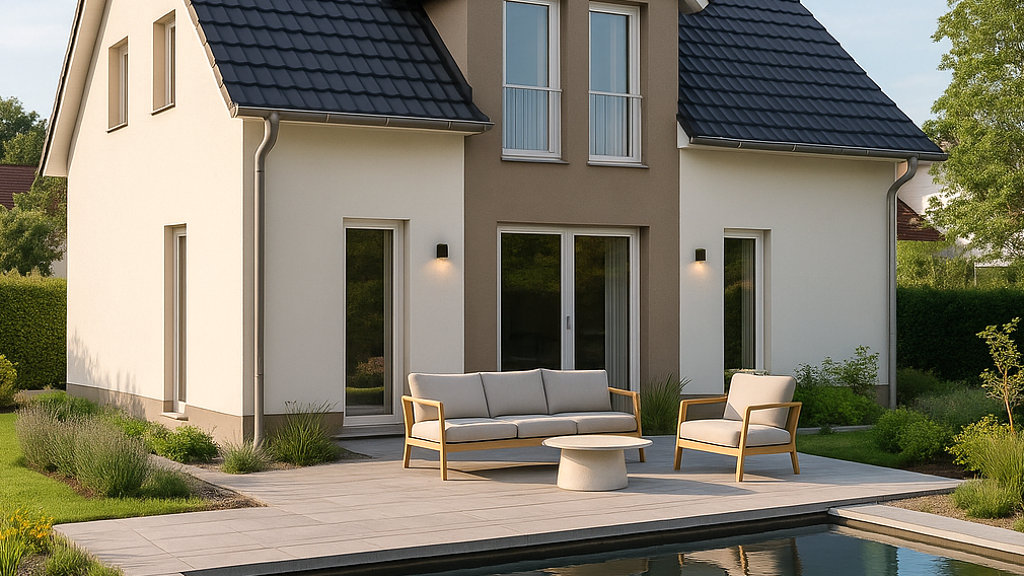 inklusive Einreichplan, Energieausweis, Fundamentplatte, Rollläden, moderner Luft-Wasser-Wärmepumpe & Fußbodenheizung