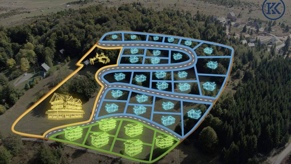 Welcome to Chaletdorf, a unique Alpine wellness village located on the edge of Durmitor National Park. Set on a generous 45,000 m² plot, the village features a harmonious ensemble of private villas, clubhouses, mini-hotels, and an exclusive boutique wellness hotel. The location combines tranquility and privacy with close proximity to shops, restaurants, lakes, hiking trails, and ski facilities.