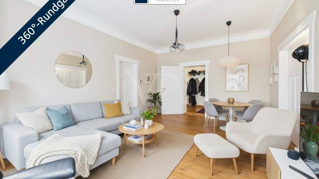 Bereits beim Betreten der Wohnung wird die klassische Altbaustruktur deutlich. Ein großzügiger zentraler Flur erschließt nahezu alle Räume und sorgt für eine übersichtliche und funktionale Raumaufteilung. Die typischen Merkmale eines stilvollen Altbaus, darunter großzügige Raumhöhen, große Fensterflächen sowie hochwertige Parkettböden, schaffen eine helle, offene Wohnatmosphäre und verleihen der Wohnung ihren unverwechselbaren Charakter.