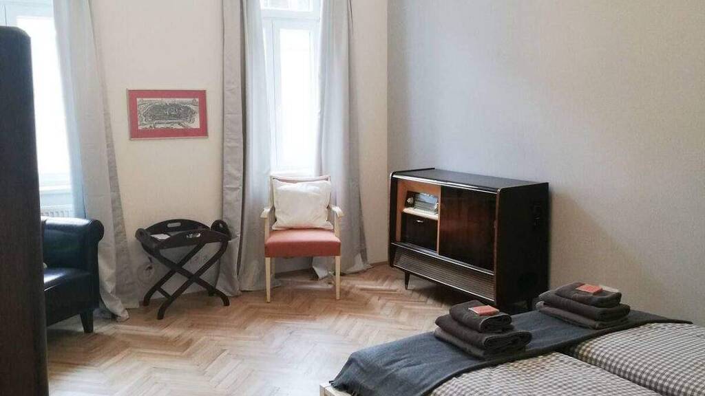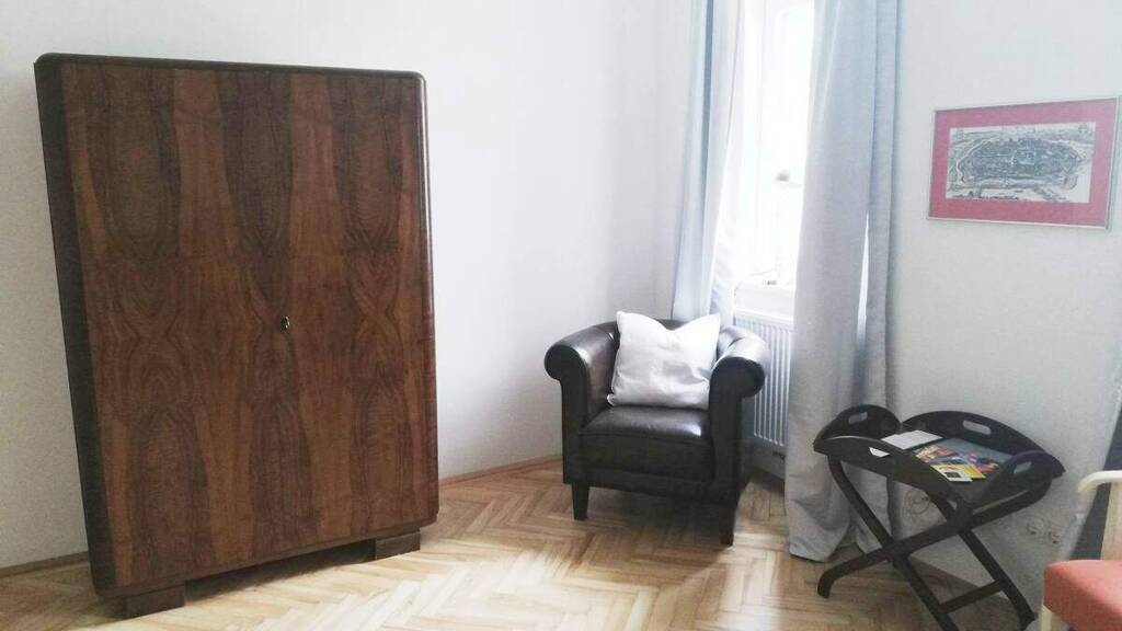 Diese gemütliche 2-Zimmer-Wohnung befindet sich im belebten 16. Bezirk, besticht aber durch ihre ruhige Lage in einer Seitenstraße. Sie bietet ein angenehmes Wohnambiente mit einer gut durchdachten Raumaufteilung. Das helle Wohn- und Schlafzimmer ist mit einem bequemen Doppelbett, einem großen Kleiderschrank mit viel Stauraum, einem Tisch mit zwei Stühlen und einem Fernseher ausgestattet. Das zweite Zimmer verfügt über eine Kleiderstange und kann flexibel als Gäste- oder Arbeitszimmer genutzt werden.