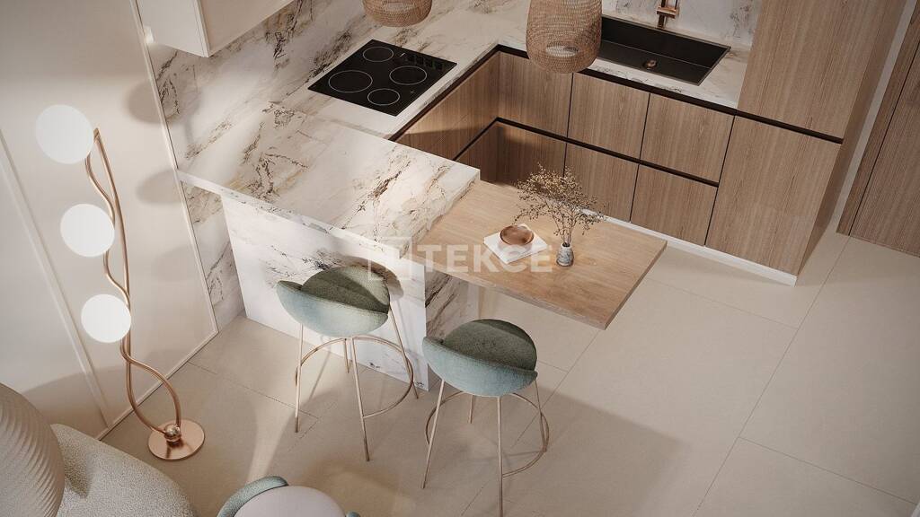 Das Projekt bietet sorgfältig gestaltete Einzimmer-, Ein- und Zweizimmerwohnungen, die jeweils so gestaltet sind, dass sie eine harmonische Mischung aus Komfort und Funktionalität bieten an. Die Innenräume sind durchdacht angelegt und verfügen über offene Grundrisse, die den Raum und das natürliche Licht durch große Fenster maximieren. Jede Wohnung zeichnet sich durch hochwertige Oberflächen, moderne Ästhetik und neutrale Farbpaletten aus, wodurch ein einladender und anspruchsvoller Wohnraum entsteht. Die Wohnungen sind mit Einbauschränken und Küchengeräten ausgestattet, um den Bewohnern Komfort und Zweckmäßigkeit zu bieten. Die Küchen sind mit eleganten Schränken und hochwertigen Geräten ausgestattet, die das moderne Design ergänzen. Die Badezimmer sind mit eleganten Armaturen und Oberflächen ausgestattet, die für ein luxuriöses Ambiente sorgen. Jedes Detail wurde berücksichtigt, um ein nahtloses und stilvolles Wohnerlebnis zu bieten, das sowohl für Einzelpersonen als auch für Familien ideal ist.