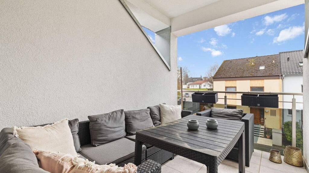 Die Wohnung mit ca. 78 m² Wohnfläche befindet sich in einem 2017 gebauten Mehrfamilienhaus in ruhiger Lage von Ittersbach. Bereits im Eingangsbereich kann man die durchdachte Aufteilung erkennen: Hier ist genügend Platz für eine Garderobe sowie der Zugang zum Gäste-WC. Das Wohn-/Esszimmer mit der offenen Küche bilden das Zentrum der Wohnung. Von hier aus gelangt man auf den gemütlichen überdachten Balkon.