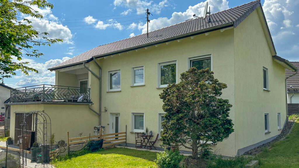 Dieses gemütliche Einfamilienhaus befindet sich in einem sehr gepflegten und frisch renoviertem Zustand. Die Immobilie wurde im Jahr 1969 in Massivbauweise auf einem 1.557 m² großen Grundstück errichtet und bietet eine Gesamtwohnfläche von ca. 165 m². Im Souterrain mit zwei Zimmern, einer Küche und einem komplett erneuerten Bad mit bodentiefer Dusche wäre ggf. eine Einliegerwohnung möglich. Außerdem sind auf der Ebene noch ein Waschraum, ein Heizungsraum sowie ein Vorratsraum vorhanden. Über den Vorratsraum gelangen Sie in die ins Haus integrierte Garage. Im Erdgeschoss befindet sich der Hauptwohnbereich (4 Zimmer, Küche, Bad). Vom offen gestalteten Wohn- / Essbereich gelangen Sie auf die großzügige Sonnenterrasse mit einem herrlichen Blick in den angrenzenden Garten. Die Immobilie ist besonders für eine Familie mit Kindern oder für 2 Generationen geeignet, die unter einem Dach leben möchten!