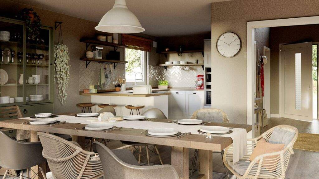 Der großzügige Wohn- und Essbereich mit über 28 m² öffnet sich über große Fenster direkt zur Terrasse und in Ihren persönlichen Garten.