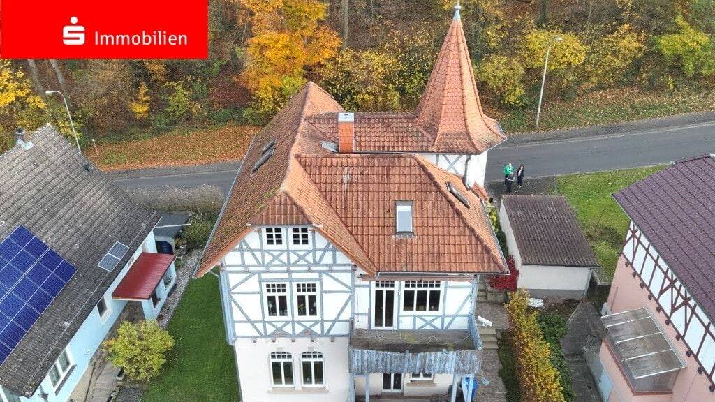 Willkommen in Ihrem neuen Zuhause! Diese außergewöhnliche Fachwerk-Villa aus dem Jahr 1903 verbindet historischen Flair mit behaglichem Wohnkomfort - ein Ort, an dem sich Geschichte und modernes Familienleben auf wunderbare Weise begegnen. Schon beim Eintreten spürt man die Großzügigkeit und Herzlichkeit des Hauses. Die charmante Villa mit ihrem markanten Turm, bietet auf drei Ebenen viel Raum zur individuellen Gestaltung. Schon beim Betreten des Hauses wird man von den stilvollen Elementen wie originale Dielenböden, historischen Türen, imposante Treppe und Steinböden beeindruckt. Im Erdgeschoss befindet sich eine Gewerbeeinheit, zuletzt als Ingenieurbüro genutzt. Aufgeteilt in drei Büroräume, eine Pantryküche ein WC sowie einen Balkon mit Südausrichtung. Über eine wunderschöne Holztreppe gelangen Sie in die separate Wohnung. Im Obergeschoss befinden sich das offene Wohn- und Esszimmer mit direktem Zugang auf den Balkon, von dem Sie einen Panoramablick über ganz Melsungen genießen. Angrenzend befindet sich die gemütliche Wohnküche. Über den Flur ist das Badezimmer mit Dusche und Badewanne sowie ein HWR mit Waschmaschinenanschluss zugänglich. Der liebevoll gestaltete Charakter prägt jeden Raum - auch das Treppenhaus, in dem sich das Herzstück des Hauses befindet, das "Türmchen". Von der Empore im Dachgeschoss, unter dem "Türmchen" genießen Sie in besonderer Atmosphäre Ihr eigenes Heimkino mit großer Leinwand und Soundsystem. Auf dieser Ebene befinden sich drei Schlafräume, eine Ankleide sowie ein separates WC. Weiterer Stauraum bietet das Kellergeschoss (Teilunterkellerung). Die Kombination aus historischer Architektur, moderner Technik und traumhaftem Weitblick macht dieses Anwesen zu einer echten Rarität auf dem Immobilienmarkt in Melsungen. Das Objekt ist als Kulturdenkmal gemäß § 2 Abs. 1 Hessisches Denkmalschutzgesetz (HDSchG) in den Arbeitslisten des Landesamtes für Denkmalpflege Hessen erfasst.