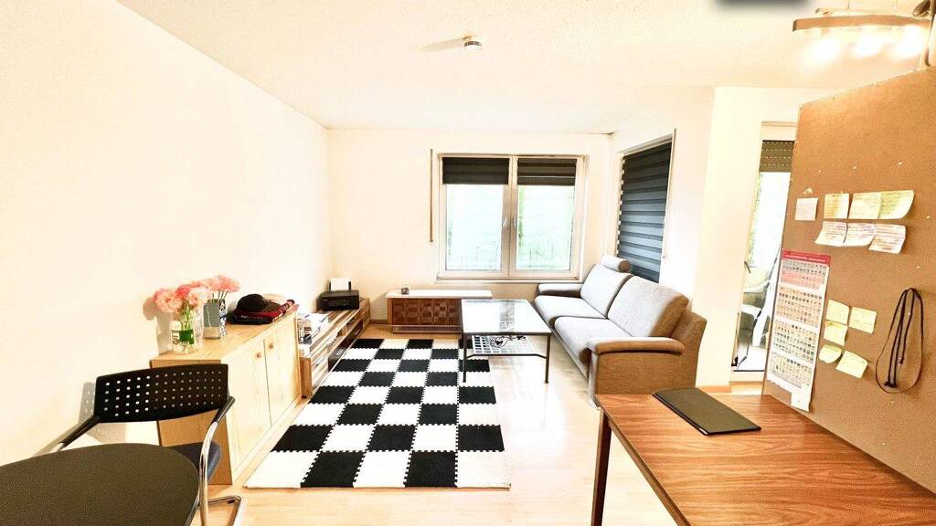 Diese charmante 1-Zimmer-Wohnung im 2. Obergeschoss überzeugt mit einer intelligenten Raumaufteilung und einer angenehmen, hellen Atmosphäre. Auf etwa 46 m² Wohnfläche bietet sie genügend Platz für einen Wohn- und Essbereich mit gemütlicher Schlafecke. Vom Wohnzimmer aus gelangen Sie direkt auf den sonnigen Balkon, der zum Entspannen und Verweilen einlädt.
