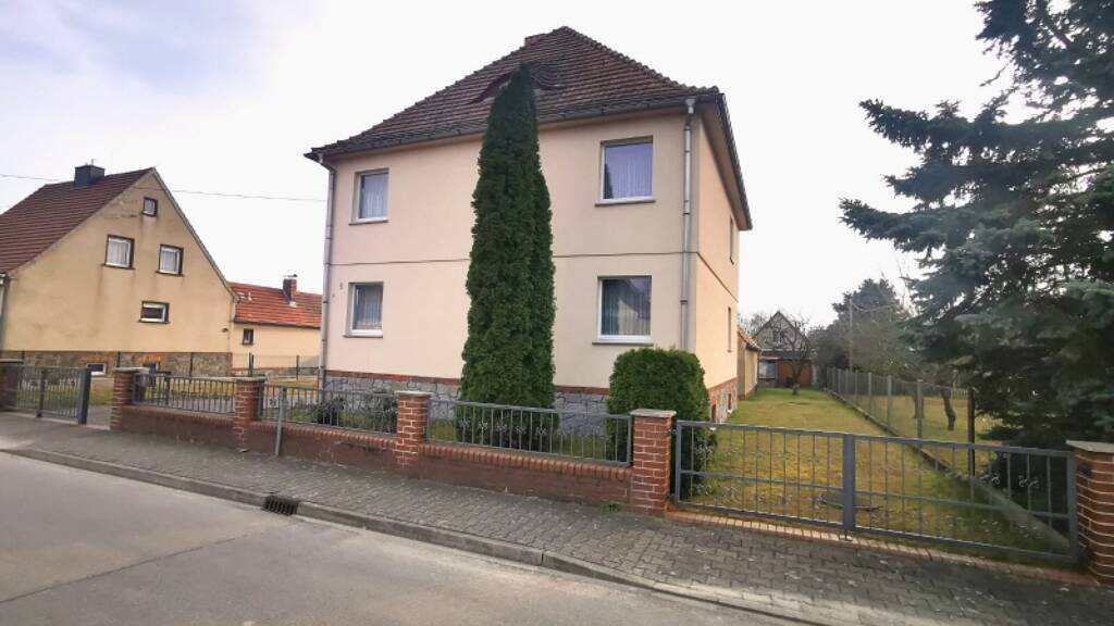 Verkauft wird ein Einfamilienhaus, welches sich in einem sehr guten Zustand und in ruhige Lage befindet. Eine vollständige Sanierung wurde 1999 durchgeführt. Die Immobilie ist voll unterkellert. Der Keller ist trocken. Die beiden Etagen haben je drei Zimmer und eine Küche. Eine Einbauküche im Erdgeschoss ist vorhanden. Im 1. OG befindet sich ein Badezimmer mit Badewanne. Das Badezimmer für das EG liegt im Keller und hat eine Dusche mit Badewanne. Zwei WCs sind im Hausflur für jede Etage vorhanden. Der Dachboden ist für Wohnzwecke ausbaufähig.