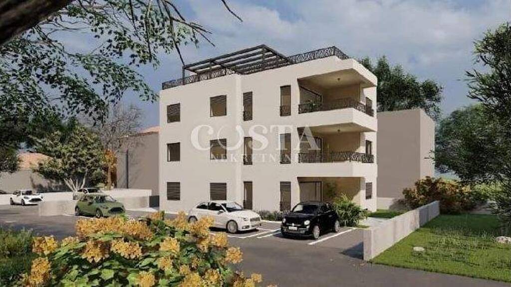 In Petrcane bei Zadar steht eine großzügige, im Bau befindliche Wohnung in Meeresnähe zum Verkauf. Die 74,5 m² große Wohnung befindet sich im Erdgeschoss eines kleineren Wohnhauses mit drei Wohneinheiten. Sie besteht aus einem Wohnzimmer, einer Wohnküche, drei Schlafzimmern, einem Badezimmer und einem separaten WC sowie einer überdachten Terrasse von 15,45 m². Zur Wohnung gehören außerdem ein Garten und zwei Stellplätze im Innenhof des Gebäudes. Die Gesamtfläche der Wohnung beträgt somit 105 m².