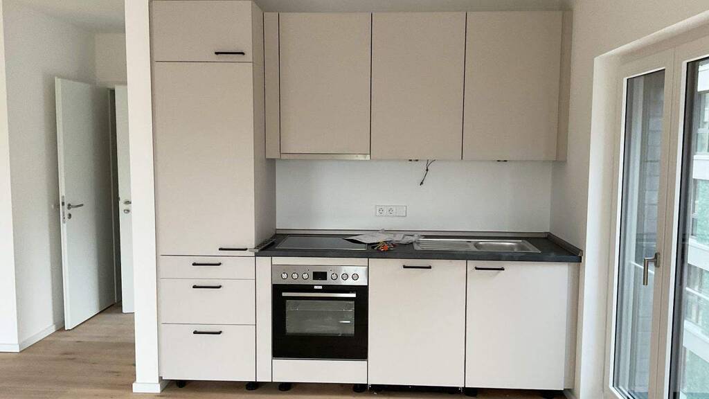 Diese neue und großzügig geschnittene 2-Zimmer-Wohnung lädt Sie zum Wohnen genießen ein. Sie befindet sich im 2. Obergeschoss und ist barrierefrei erreichbar. Über den Flur gelangen Sie offen in den ca. 44 m² großen Wohnbereich. Hier ist der Kochbereich mit Einbauküche integriert. Die Loggia wirkt geschickt als kleiner Raumtrenner, so können Sie sich auf der einen Seite einen Essbereich und auf der anderen Seite einen Office-Bereich einrichten. Platz für Wohnzimmermöbel findet sich natürlich auch noch. Passend zu allen Möbelstilrichtung ist die Neubauausstattung mit bodentiefen Fenstern, Echtholzparkett und weißen Wänden. Weiteren Komfort bieten das große Tageslichtbad mit Walk-In-Dusche sowie der Hauswirtschaftsraum mit Waschmaschinenanschluss.