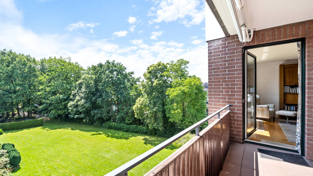 Das Wohnzimmer ist großzügig geschnitten und bietet viel Platz für gemütliche Stunden. Große Fenster sorgen für viel Tageslicht und schaffen eine einladende Atmosphäre. Vom Wohnzimmer aus gelangen Sie auf den Balkon, der einen herrlichen Blick ins Grüne bietet und zum Entspannen einlädt.