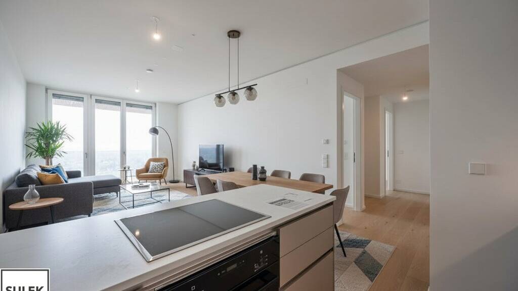 In der 26. Etage des renommierten Projekts Grünblick im Viertel Zwei, direkt am Grünen Prater und nur wenige Schritte von der U2-Station Stadion entfernt, erwartet Sie ein hochwertiger 3-Zimmer-Erstbezug mit 13 m² Balkon und beeindruckendem Fernblick über die Stadt Wien und darüber hinaus.