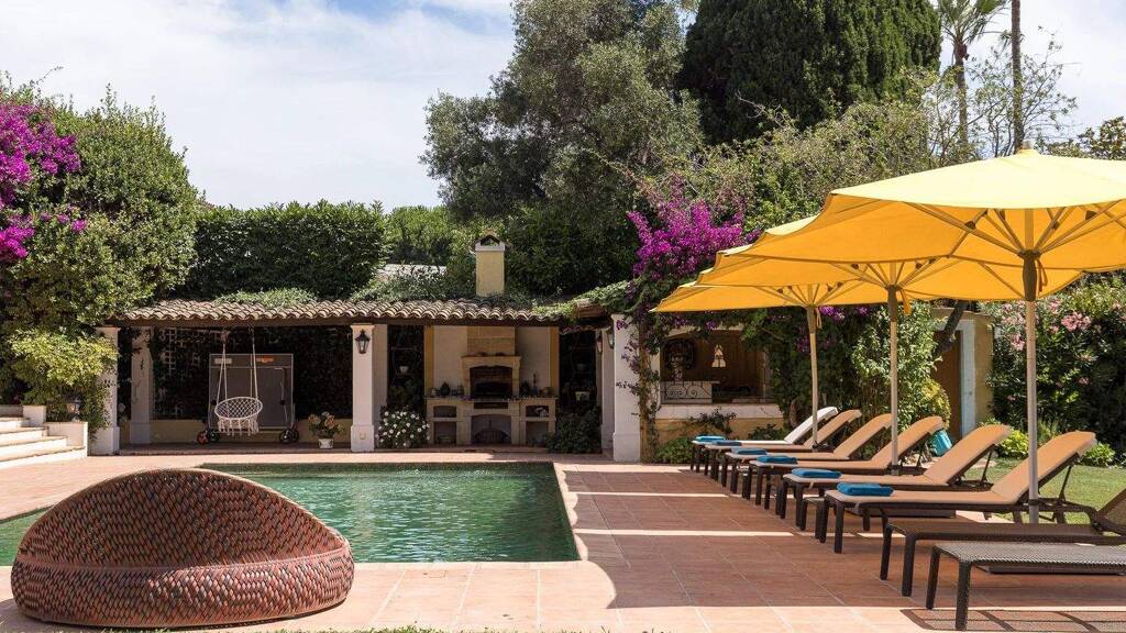 The adjacent guest villa offers a warm atmosphere with an open kitchen, spacious living room, and well-appointed bedrooms with bathrooms. The upper floors include additional living spaces, comfortable bedrooms with en-suite bathrooms, and even an equipped gym, offering complete flexibility and comfort for guests.