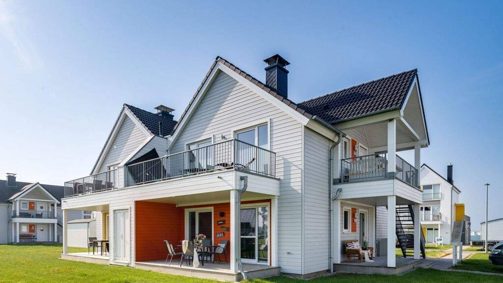 Willkommen in Ihrem neuen Zuhause im Ferienresort Olpenitz! Diese moderne Erdgeschosswohnung liegt in zweiter Reihe am Wasser mit einem atemberaubenden Blick auf das Hafenbecken und ist nur einen Katzensprung von der Ostsee entfernt.