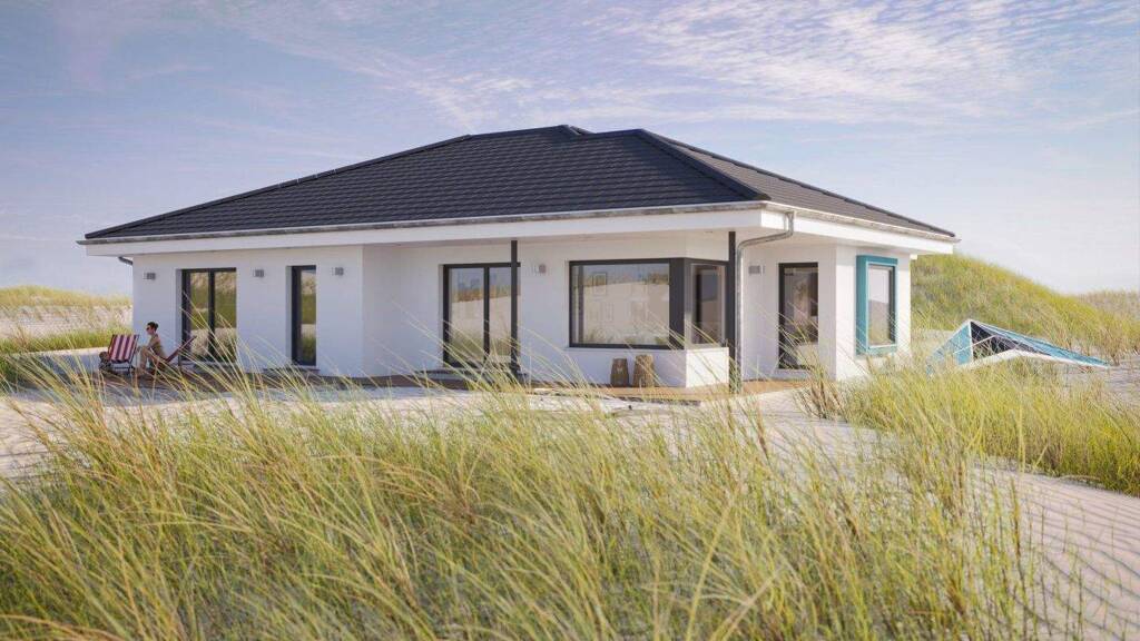 Der Bien-Zenker AMBIENCE 100 Bungalow ist ein beeindruckendes Beispiel dafür, wie individuell geplantes Wohnen aussehen kann. Mit einer Wohnfläche von 100 Quadratmetern auf einer Ebene bietet dieses Haus eine durchdachte Architektur, die sich perfekt an Ihre Wünsche und Lebensbedürfnisse anpasst. Die offene Raumgestaltung schafft eine helle und freundliche Atmosphäre, die das Zusammenleben angenehm und harmonisch gestaltet. Das Schlafzimmer mit direktem Gartenzugang ermöglicht Ihnen einen privaten Rückzugsort mit naturnahem Flair, während das Arbeitszimmer flexibel genutzt werden kann - ob als Büro, Hobbyraum oder Gästezimmer. Erker und zusätzliche Bauteile erweitern den Raum und verleihen dem Haus eine besondere Note, die sowohl klassisch, mediterran als auch modern interpretiert werden kann. Das durchdachte Konzept verzichtet bewusst auf einen Keller, was den Bauprozess vereinfacht und ideal für Paare oder kleine Familien ist, die Wert auf Funktionalität und Komfort legen.