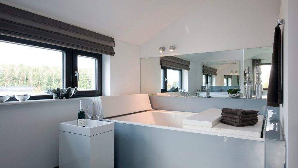 Ein Bungalow ist nicht nur für Singles oder Paare die perfekte Wohnform. Auch Familien kann er viel Komfort bieten. So muss der Kinderwagen nicht mühsam treppauf und treppab getragen werden und es gibt keine Stolperfallen für die Kleinen. Damit sich später alle Bewohner wohlfühlen, sollte genügend Platz eingeplant werden. Mit einer Nettogrundfläche von rund 130 m² entpuppt sich der Entwurf "AMBIENCE 130" als perfektes Familiendomizil für drei. Von außen präsentiert sich das Fertighaus in zeitlos-schönem Gewand: Die beiden versetzten Baukörper hüllen sich in einen strahlend weißen Mineralputz, der von den anthrazitfarbenen Fensterrahmen und dem dunklen Walmdach kontrastiert wird. Großzügige Verglasungen entlang der Gartenseite sorgen für spannende Ein- und Ausblicke. Ein Highlight ist das leicht herausstehende Fenster, das den Erker in Szene setzt.