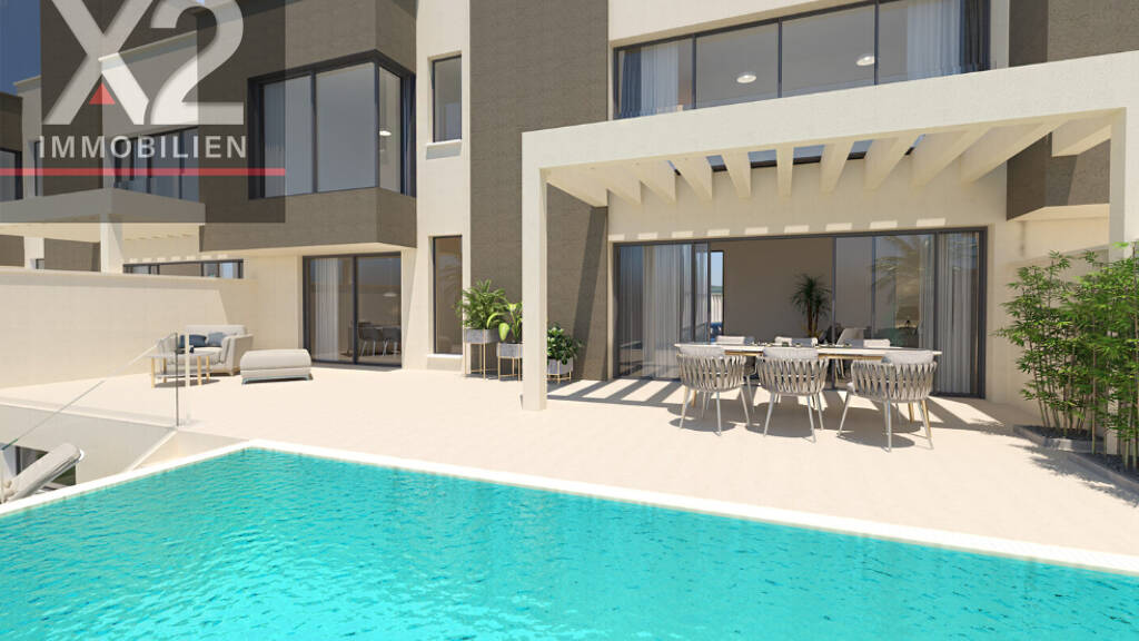 Dieser Neubau wird hochwertig und qualitativ anspruchsvoll erbaut. Besonders der Außenbereich der Villa lässt sich sehen und ist eines der vielen Highlights dieser Immobilie.
