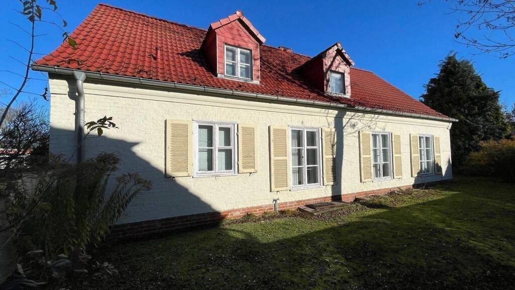 Die Wohnfläche beträgt etwa 160 m² und verteilt sich auf Erd- und Dachgeschoss mit insgesamt acht Zimmern. Ursprünglich wurde das Haus als Wohnhaus mit integrierter Arztpraxis konzipiert, was einen zusätzlichen Eingang bietet und somit eine teilgewerbliche Nutzung oder die Einrichtung einer Einliegerwohnung möglich macht.