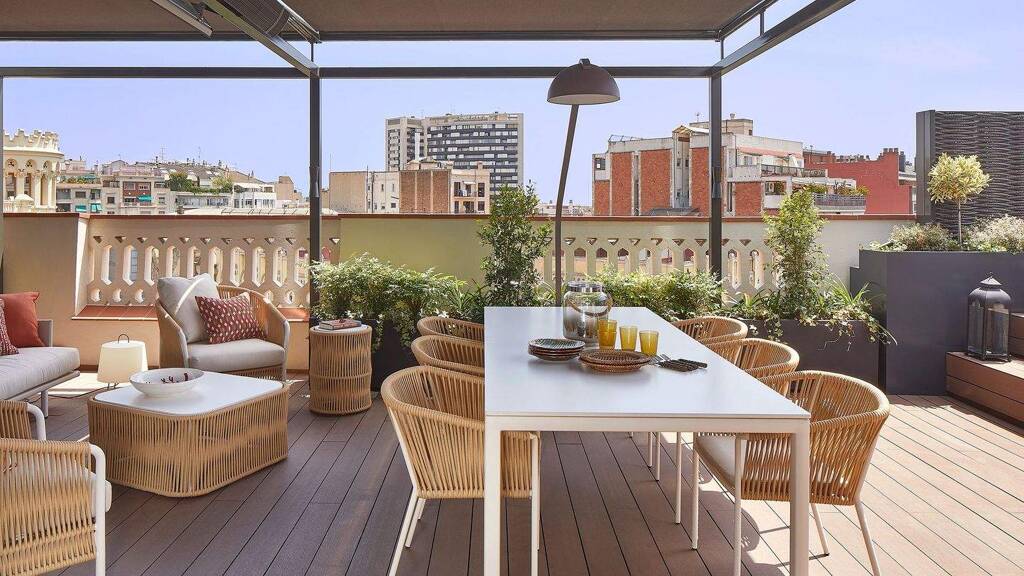 Die Ecklage des Gebäudes bietet privilegierte Ausblicke auf die historische Architektur des Eixample und zum Meer, während neun Balkone für ständiges Licht sorgen. Nachts verwandelt sorgfältig gestaltete Innenbeleuchtung das Haus in einen eleganten und ruhigen Raum.