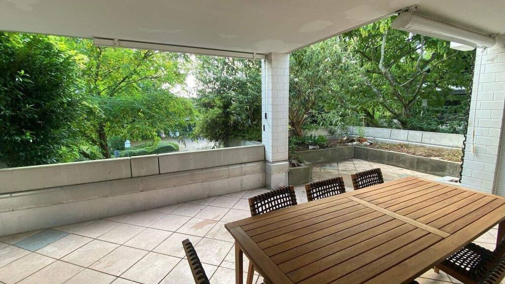 - Großzügiger Wohn-/Essbereich mit echtem Schieferboden - Der Wohnbereich lässt sich mit wenig Aufwand in ein zusätzliches Zimmer abtrennen - Angrenzende Küche mit Einbauküche - Drei helle Schlafzimmer - Großzügiges Tageslichtbad - Gäste-WC - Abstellraum, über Außenbereich zugänglich - Diverse maßgefertigte Einbauschränke bieten viel Stauraum - Zugang zur großzügigen, teilweise überdachten Terrasse, die sich über zwei Seiten der Wohnung erstreckt – mit Südwest-Ausrichtung für sonnige Nachmittage und entspannte Abende.