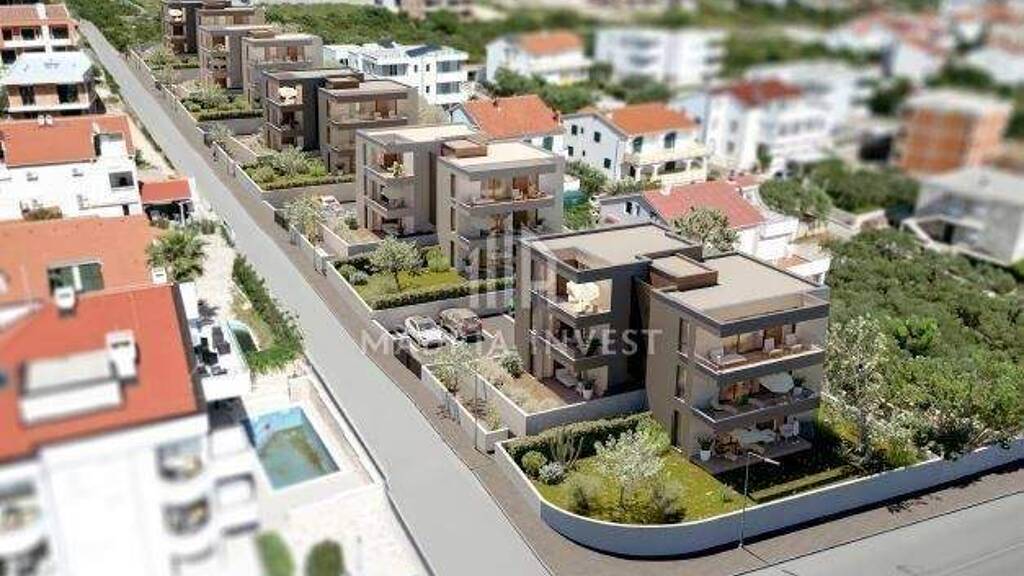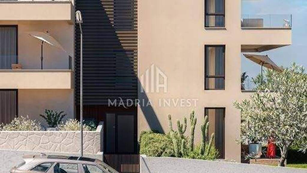 **Zu verkaufen: Moderne Apartments in Luxusvillen mit Panoramablick auf Novalja und den Archipel** Das Angebot umfasst attraktive Apartments in fünf modernen Villen, die an einem sanften Hang gebaut wurden und einen spektakulären Blick auf die Stadt Novalja und die umliegenden Inseln bieten. Zu jeder Wohnung gehören ein bis zwei Parkplätze, die durch befestigte Gehwege mit den Villen verbunden sind. Die Apartments zeichnen sich durch große Glasflächen aus, die einen ungehinderten Blick auf das Meer ermöglichen, während die neueste Generation moderner PVC-Tischlerei für eine hervorragende Isolierung sorgt. Großzügige Terrassen mit Glasgeländern unterstreichen den Eindruck von Luxus zusätzlich. Für maximalen Komfort sind Fenster und Schiebewände mit elektrischen Rollläden und Moskitonetzen ausgestattet. Die Fassaden sind mit einem hochenergieeffizienten WDVS-System ausgeführt. Die Klimatisierung erfolgt über ein "Multi-Split"-Heiz- und Kühlsystem und die Außengeräte sind diskret hinter dekorativen Netzstrukturen versteckt, die sich perfekt in die Architektur des Gebäudes einfügen. Die Innenräume sind mit hochwertiger, erstklassiger italienischer Keramik, großformatig und geradlinig geschnitten, ausgestattet. Die Badezimmer verfügen über moderne begehbare Duschen mit Glasabtrennung und hochwertige Sanitäranlagen mit eingebauten Spülkästen und eleganten Armaturen. Die Treppen sind mit hellem Quarz verkleidet, der mit den charakteristischen Farben des Steins der Insel Pag harmoniert, und sind mit modernen Geländern ausgestattet. Alle Eingangstüren sind einbruchsicher, hochwertig und mit einer Mehrfachverriegelung ausgestattet. Die Gärten sind mit einheimischen Pflanzen geschmückt und nach höchsten Gartenbaustandards angelegt, mit einem implementierten automatischen Bewässerungssystem. Die Umfassungsmauern sind im traditionellen Trockenbaustil aus echtem Pager Stein errichtet. Zu den Wohnungen gehört außerdem ein Abstellraum im Keller des Gebäudes. Alle Wohnungen verfügen über zwei Schlafzimmer, eine Fläche zwischen 55 und 83 m² und haben großzügige Terrassen von 10 bis 15 m². Die Erdgeschosswohnungen verfügen zusätzlich über private Gärten. **Geplanter Einzug: Frühjahr 2026**