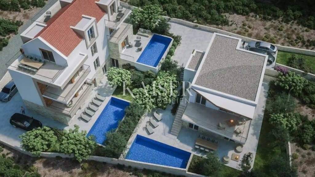Kaiser Immobilien präsentiert: Luxuswohnung mit Innenhof und Swimmingpool. Das Angebot umfasst eine Wohnung im Erdgeschoss eines im Bau befindlichen Gebäudes mit 6 Wohnungen auf zwei Etagen. Die Bauarbeiten sollen voraussichtlich im Jahr 2026 abgeschlossen sein. Liegt in der Touristenbucht Stivasnica, in der Nähe von Sibenik. Diese geräumige und luxuriös eingerichtete Erdgeschosswohnung bietet 95,4 m² Innenfläche (einschließlich Lagerraum) sowie einen 140 m² großen Garten mit einem privaten Swimmingpool (29,5 m²) und ist somit perfekt zum Genießen und Entspannen im Freien geeignet. Die Wohnung besteht aus drei geräumigen Schlafzimmern, eines davon verfügt über ein eigenes Ankleidezimmer. Das 27,7 m² große Wohnzimmer ist in einem offenen Konzept mit einem modernen Küchen- und Essbereich verbunden. Zudem verfügt die Wohnung über zwei elegante Badezimmer, die für maximalen Komfort sorgen. Zum Objekt gehören drei Stellplätze - ein Doppelstellplatz in Reihe (2 x 12,5 m²) und ein zusätzlicher Stellplatz auf der Nordseite, was eine Seltenheit und einen außergewöhnlichen Komfort darstellt. Diese Immobilie ist ideal für alle, die Komfort, Sicherheit und einen modernen Lebensstil suchen. Die Wohnung ist mit erstklassigen Annehmlichkeiten ausgestattet, die das ganze Jahr über einen hohen Komfort gewährleisten. Die Thermofassade sorgt für eine hervorragende Wärmedämmung, senkt die Heiz- und Kühlkosten und gewährleistet die Energieeffizienz des Hauses. Für höchste Sicherheit sorgen eine Videoüberwachung und eine Video-Gegensprechanlage, die jederzeit eine Zutrittskontrolle und ein sicheres Gefühl ermöglichen. Jedes Zimmer ist mit einer Klimaanlage ausgestattet. Für zusätzlichen Komfort sorgen elektrische Rollläden und Moskitonetze, die vor unerwünschten Außeneinflüssen schützen und so für einen ruhigen und angenehmen Aufenthalt sorgen. Sicherheitstüren sichern die Wohnung zusätzlich ab und geben den Bewohnern Sicherheit und Geborgenheit. Einen besonderen Luxus bringt eine Fußbodenheizung. Die Wohnung enthält: Wohnungsfläche: 90,1 m² Abstellraum: 5,3 m² Hof mit Schwimmbad: 140 m² Schwimmbad: 29,5 m² Stellplätze: Doppelstellplatz in Reihe: 2 × 12,5 m² Zusätzlicher Stellplatz (Nord) Baustandards und Materialqualität: Konstruktion: Stahlbetonskelett mit 25 cm dicken Thermoblocksteinen, wodurch die Langlebigkeit und Stabilität des Gebäudes gewährleistet wird. Fassade: 10 cm Steinwolle und Abschlussverkleidung aus dalmatinischem Stein und Acrylputz. Dach: Mediterrane Ziegel und 19 cm Wärmedämmung aus Mineralwolle. Zimmerei: PVC-Profile mit Argon-gefülltem Isolierglas und motorisierten Aluminium-Rollläden. Eingangstür: Einbruch- und Feuerschutztür mit Wärme- und Schalldämmung. Sanitärausstattung: Hochwertige Keramik, GROHE und HANSGROHE Armaturen, GEBERIT Einbauspülkästen. Boden: Dreischichtiges Eichenparkett in den Wohn- und Schlafzimmern, während Küche und Eingang mit Keramikfliesen ausgelegt sind. Heizung und Kühlung: Mitsubishi Inverter Heiz- und Kühlsystem, elektrische Fußbodenheizung in Wohnräumen und Bädern. Lüftung: Eine mechanische Lüftung der Sanitärräume und der Küche sorgt für Frischluft in allen Räumen. Elektroinstallationen: Kabelinstallation für TV, Internet und Telefon, Gegensprechanlage mit Freisprecheinrichtung und Vorbereitung für Ladegerät für Elektroautos. Stivasnica ist ein Touristenort in der gleichnamigen Bucht, 12 km südöstlich von Rogoznica, 34 km von der Stadt Sibenik entfernt, unweit des Kaps Planka. Dieses ruhige Reiseziel ist ideal für Liebhaber der Natur und des klaren Meeres. Die Strände sind überwiegend felsig mit Betonterrassen und einigen Kieselbereichen. Das Meer ist extrem sauber und ideal zum Schwimmen, Tauchen und anderen Aktivitäten. In der Nähe befindet sich die Marina Frapa, eine der schönsten Marinas an der Adria, mit einem reichhaltigen Angebot für Segler und Besucher. Entfernungen zu größeren Städten und Straßen: Zadar: Stivasnica ist etwa 120 km von Zadar entfernt. Sibenik: Liegt etwa 50 km südöstlich von Sibenik. Split: Die Entfernung nach Split beträgt ca. 55 km. Autobahn A1: Der nächstgelegene Zugang zur Autobahn A1 erfolgt über die Ausfahrten Sibenik oder Prgomet, von wo aus der Norden und der Süden Kroatiens bequem zu erreichen sind. Die Käuferprovision wird bei der ersten Rechtshandlung fällig. Für weitere Informationen und Besichtigungen kontaktieren Sie uns bitte: Tel: +385992510230, E-Mail: marijana.papic@kaiser-immobilien.hr