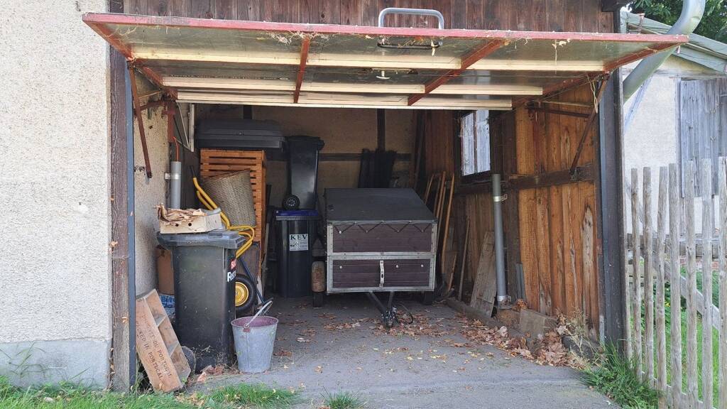 Das Grundstück ist von 2 Seiten erreichbar, Anbauten an das Haus, wie das ins alter gekommene Kleingebäude , genutzt als Kegelbahn, eine geräumige Garage , ein Kleingebäude zur Nutzung für z.B. Anhänger und einen Brunnen ( laut Info mit Wasser gefüllt)