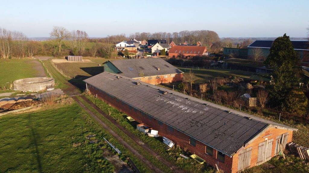 Diese wunderbare für Projektierungen geeignete Fläche befindet sich auf einem circa 5284 m² großen Grundstück. Früher standen in Straßennähe zwei Einfamilienhäuser - eines mit einem Nebengebäude, siehe Bild "Projektierungsmöglichkeit". In der hinteren Hälfte des Grundstückes befindet sich ein 45 m langer und 10,50 m breiter Kuhstall, an dessen hinteren rechten Seite ein Schuppen angebaut ist. Der 1975 erstellte Kuhstall könnte sich durch einen Umbau unter Nutzung der bestehenden Grundmauern und einer Aufstockung des Dachstuhls in ein Reihenhaus-Ensemble, bestehend aus zwei Reihenendhäusern und drei Reihenmittelhäusern mit jeweils ca. 125 m² Wohnfläche entwickeln. Die vorhandene Bausubstanz macht einen soliden Eindruck. Die angesetzte Scheune könnte gegebenenfalls als Heizungs- und/ oder Lagerraum dienen. Eine Bauvoranfrage war geplant, ist aber aufgrund des Verkaufes nicht umgesetzt worden. Möglicherweise sind an der Straße wieder zwei (oder mehr) Einfamilienhäuser zu erbauen - so, wie es die inzwischen abgerissenen Gebäude mit den Hausnummern 40 und 42 bereits in der Vergangenheit darstellten-siehe Bild "Projektierungsmöglichkeit" .