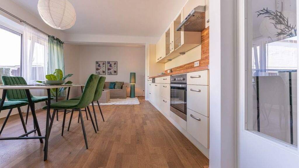 Die Wohnküche verfügt über eine große Fensterfront, welche die Wohnung lichtdurchflutet, hell und absolut freundlich macht. Die Sanitäreinrichtung ist neuwertig, modern und zeitgemäß. Auch die Küche befindet sich in einem neuwertigen Zustand und bietet Ihnen alles was Sie für den täglichen Bedarf benötigen.