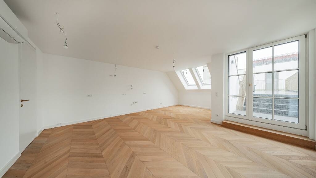 Highlights der Ausstattung: Hochwertiger Fischgrätparkett Klimatisierte Wohnräume im letzten Regelgeschoß sowie im Dachgeschoß Exquisite Sanitärobjekte in den Bädern Edles, italienisches Feinsteinzeug Gegensprechanlage mit Video-Option Komfortable Paketboxanlage Online-Hausverwaltung mittels PUCK-App