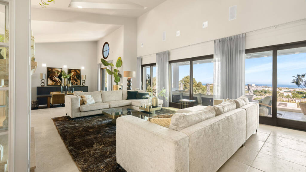 This magnificent luxury villa, situated in the prestigious El Herrojo Alto, features seven expansive bedrooms and eight beautifully appointed bathrooms.