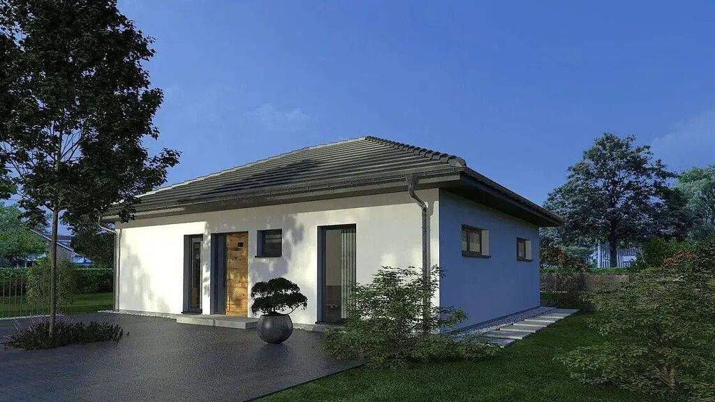 Wählen Sie auch bei diesem Bungalow zwischen Walm- und Flachdach.