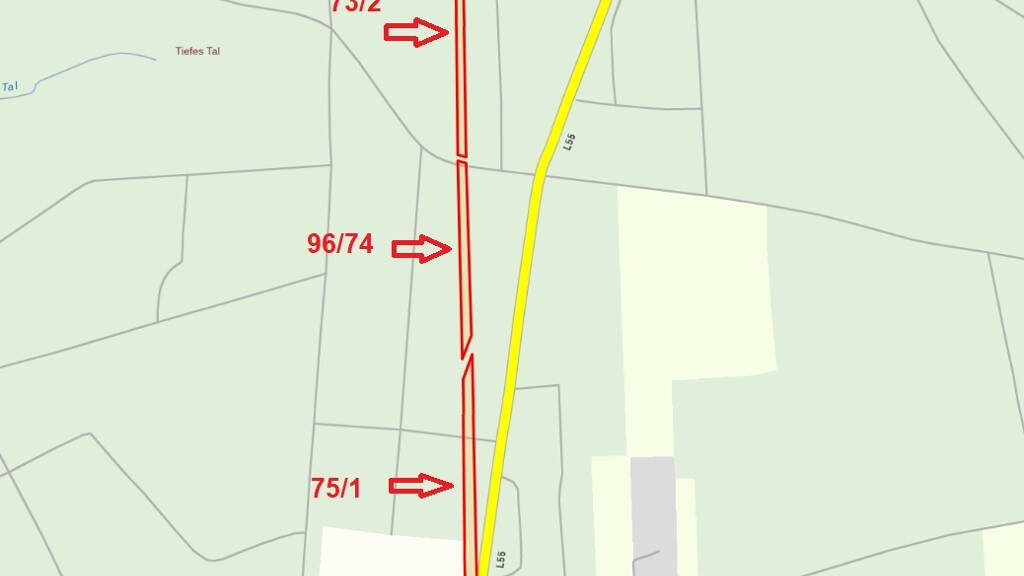 Flächen der Land- und Forstwirtschaft (Mischwald) Flurstückgrößen: Flurstück 73/2 = 4.290 m² Flurstück 96/74 = 4.590 m² Flurstück 75/1 = 6.740 m²