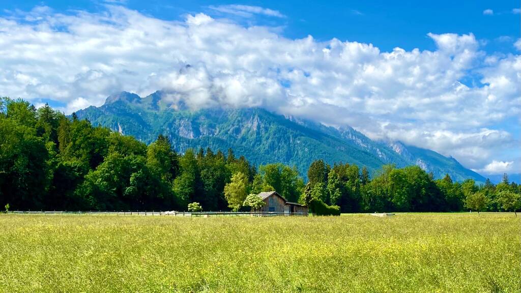 - direkter Zugang zum großen Garten mit freiem Blick auf Wald, Wiese und Berge