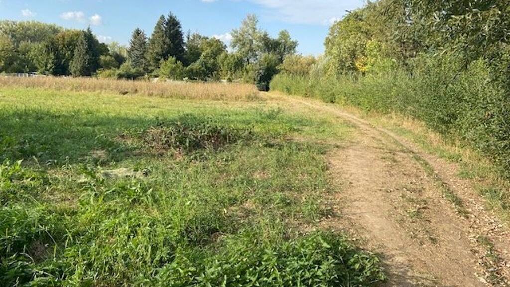 Aktuell ist diese Fläche noch unerschlossen, unbebaut und Ackerland/Grünland.