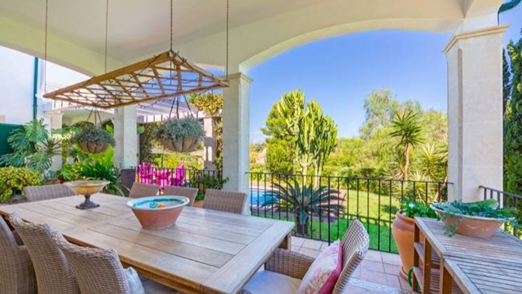Diese wunderschöne Villa befindet sich einer sehr gepflegten, ruhigen und gesicherten Einzelvillen-Wohnanlage in Cala Vinyes. Sie wurde mit viel Liebe zum Detail und Geschmack eingerichtet. Der Boden ist mit hochwertigem Laminat in allen Wohnräumen ausgelegt. Für Wärme sorgt ein grosser Pelletofen,sowie in den Schlafzimmer Infrarotheizung. Von der imposanten Eingangstür gelangt man in einen grossen hellen Vorraum mit Blick auf den wunderschönen Garten und Pool. Für viel Platz sorgt eine Doppelgarage, sowie ein separater Abstellraum und Gäste -WC. Rechts davon befindet sich die offene Küche mit gemütlichem Essbereich und Zutritt zur schönen Terrasse, Garten und Pool. Die Küche ist komplett neu und mit hochwertigen Geräten ausgestattet. Gegenüber ist der wunderschöne , großzügige Wohn-und Essbereich mit Kamin und bodentiefen Fenstern mit Blick ins Grüne. Das Obergeschoss ist aufgeteilt in 3 Schlafzimmer mit Bad ensuite. Von jedem Zimmer gelangt man auf eine Terrasse und Balkon. Im Masterschlafzimmer gibt es auch einen Jacuzzi .Von 2 Terrassen hat man etwas Meerblick. Es gibt auch eine Möglichkeit einer Ferienlizenz wieder zu aktivieren.