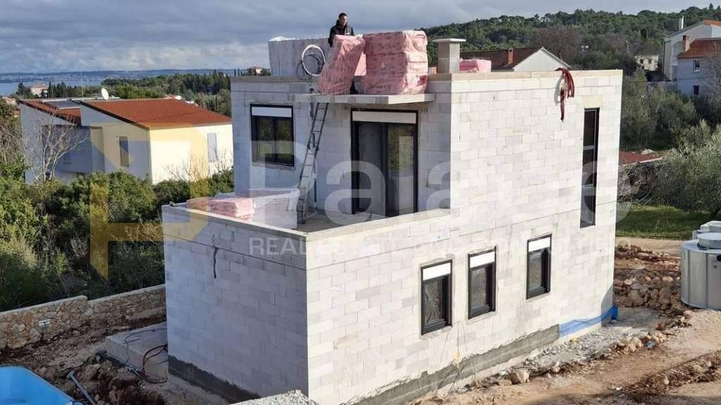 Der untere Teil des Hauses ist mit Benkovac-Stein verkleidet, und es wird auch eine dreifach verglaste PVC-Fenster mit elektrischen Rollläden und Insektenschutzgitter installiert. Alle Zimmer verfügen über Klimaanlagen - einschließlich Wohnzimmer, Küche und alle Schlafzimmer. Die Böden sind mit hochwertigen keramischen Fliesen belegt. Das Haus ist an das städtische Wasser angeschlossen und nutzt eine biologische Klärgrube. Zusätzliche Energieeffizienz wird durch 5 kW Solarpanele sichergestellt, während ein Ladegerät für Elektroautos die Praktikabilität abrundet. Ein Solar-Außendusche wird ebenfalls im Garten installiert.