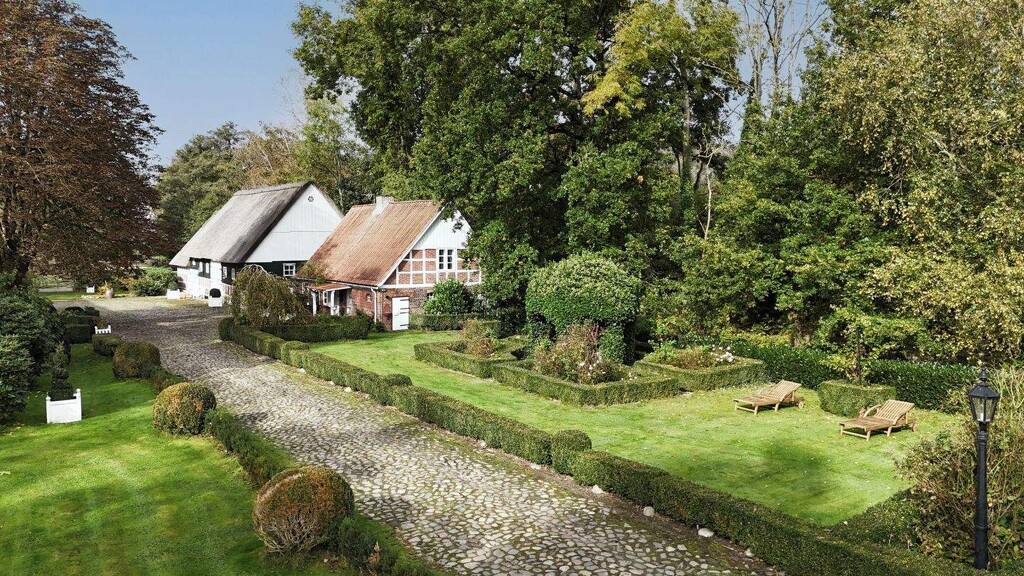Der Kastanienhof aus dem 17. Jahrhundert ist ein ensemblegeschützter Landsitz zwischen Stade und Cuxhaven. Das ca. 5,15 ha große, eingezäunte Grundstück mit altem Baumbestand bietet absolute Privatsphäre und einen weiten Blick ins Grüne. Die gepflegte Anlage umfasst drei Wohngebäude: Das reetgedeckte Fachwerkhaus (ca. 200 m²) mit hochwertiger Ausstattung, Kamin und Wintergarten, ein Atelierhaus (ca. 80 m²) mit offenem Wohnbereich, Kamin, zwei Schlafzimmern und Bad sowie ein charmantes Backhaus als Rückzugsort oder Gästehaus. Die weitläufige, moderne Reitanlage bietet vier Premium-Boxen, Paddocks, Reitplatz mit Flutlicht sowie direkte Weidezugänge - optimal für private Pferdehaltung. Eine Gas- und Holzheizung, moderne Kläranlage und liebevoll gepflegte Gärten runden das exklusive Angebot ab. Das Anwesen verbindet historischen Charme mit zeitgemäßem Luxus in idyllischer Lage.