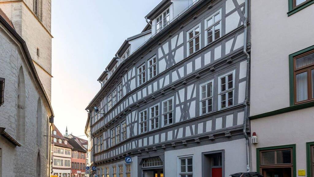Die attraktive Gewerbeeinheit befindet sich im Erdgeschoss eines stilvollen Wohn- & Geschäftshauses in zentraler Lage von Erfurt. Das charmante Fachwerkgebäude, ein eingetragenes Kulturdenkmal, wurde im Jahr 2011 umfassend saniert und verbindet historischen Charakter mit modernem Komfort.