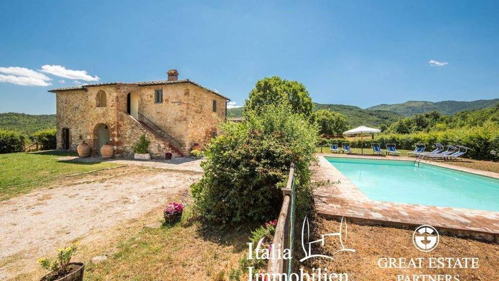 Bezauberndes Bauernhaus auf zwei Ebenen in den grünen Hügeln von Siena mit insgesamt 4 Schlafzimmern und 5 Bädern, mit Swimmingpool und in der Gemeinde Radicondoli und in der Nähe eines Naturschutzgebietes gelegen.
