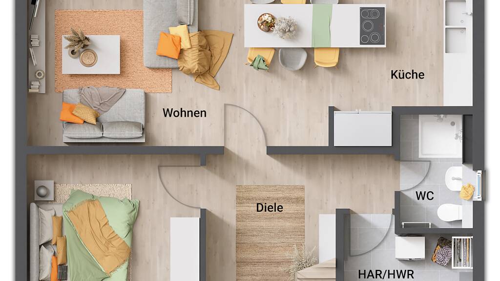 . Schlüsselfertig: Ihr Haus wird Ihnen, am Ende der Bauzeit, schlüsselfertig übergeben. Sie richten sich ganz nach Ihrem Geschmack ein.