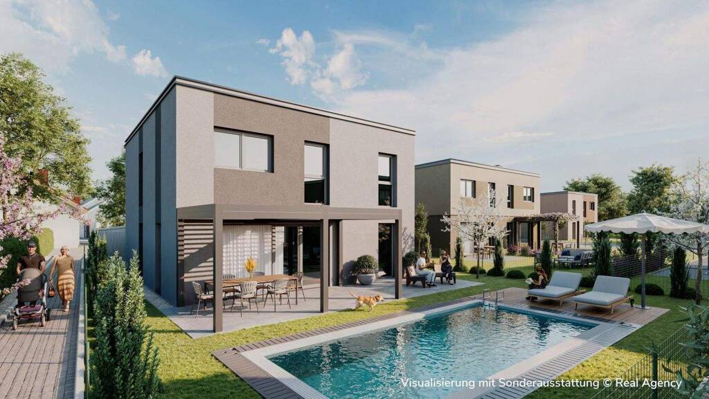 WohnGlück am Seyringer Weg - Ihr neues Zuhause in Großebersdorf Raus aus der Stadt, aber nah genug an Wien? Großebersdorf im Bezirk Mistelbach bietet genau das: ländliche Ruhe, moderne Infrastruktur und perfekte Anbindung an die Bundeshauptstadt. Eingebettet in die idyllische Landschaft des Weinviertels ist die Gemeinde ein idealer Wohnort für Familien und Pendler. Am Seyringer Weg entstehen 4 Einfamilienhäuser und 12 Doppelhaushälften mit 111-140 m² Wohnfläche, errichtet in zwei Bauphasen - die ersten Häuser stehen ab sofort zum Verkauf. Die modernen Eigenheime in nachhaltiger Holzmassivbauweise erfüllen den Niedrigstenergiestandard und überzeugen durch durchdachte Grundrisse, helle Räume und niedrige Energiekosten. Alle Einheiten sind südseitig ausgerichtet, verfügen über großzügige Gärten und zwei Stellplätze. Ruhige Zugangswege innerhalb der Anlage sorgen für Privatsphäre und Wohnkomfort. Großebersdorf - naturnah wohnen, urban leben.