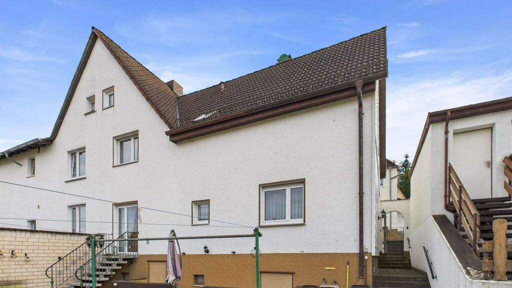 Die massiv erbaute Doppelhaushälfte wurde ursprünglich im Jahr 1938 errichtet und 1948 erweitert. Sie befindet sich auf einem großzügigen Hanggrundstück mit ca. 975 m² Fläche und bietet eine Wohnfläche von rund 130 m².