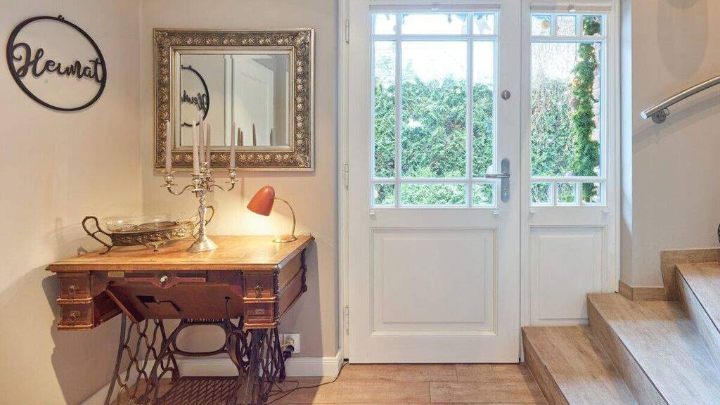 Der gesamte Stil des Hauses ist stimmig und wirkt hochwertig. Weiße Innentüren, Fenster mit dekorativen Sprossen, warme Wandfarben und geschmackvolle Einbauelemente sorgen für ein harmonisches Gesamtbild.