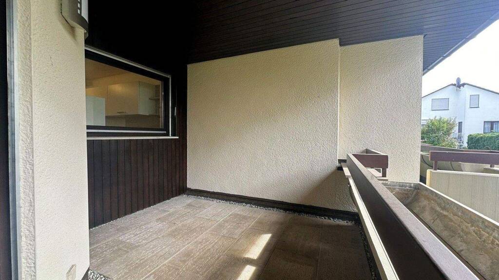 Der großzügige Wohn- und Essbereich bildet den zentralen Lebensmittelpunkt der Wohnung und öffnet sich zur überdachten, nach Süden ausgerichteten Loggia. Diese lädt zum Verweilen ein und schafft einen geschützten Außenbereich.