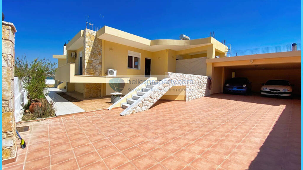 Zum Verkauf steht ein freistehendes Haus in erster Meereslinie in einer der privilegiertesten Lagen von Salamina, direkt an einem goldenen Sandstrand mit freiem Blick auf das endlose blaue Meer.