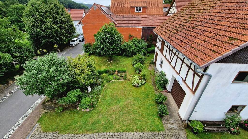 Die Ausstattung entspricht einer normalen Ausstattungsqualität und lässt Spielraum für individuelle Gestaltungsideen. Wertige Bodenbeläge und praktische Raumaufteilungen prägen das Innere. Die Zentralheizung sorgt dabei zuverlässig für angenehme Wärme im gesamten Haus. Große Fensterflächen schaffen eine angenehme Helligkeit in jedem Raum. Die großzügige Scheune erweitert das Nutzungsspektrum des Anwesens um attraktive Möglichkeiten - sei es als Bereich für Hobbys, Platz für Fahrzeuge oder die Umsetzung persönlicher Projekte. Das weitläufige Grundstück in Hanglage bietet nicht nur dem Obstgarten, sondern auch Spielflächen, Hochbeeten oder Ruheinseln ausreichend Platz. Die breite Auffahrt und die ruhige Lage verbinden Privatsphäre mit guter Erreichbarkeit. Ob Sie eine Familie sind, die Wert auf viel Raum, Garten und praktikable Nebengebäude legt, oder auf der Suche nach einem neuen Lebensmittelpunkt mit Entwicklungspotenzial - dieses Einfamilienhaus bietet Ihnen zahlreiche Perspektiven.