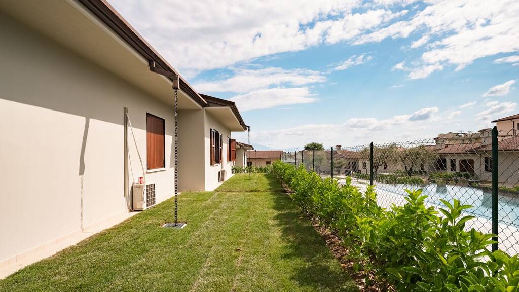 In Desenzano del Garda bieten wir Le Ville d'Oro. In einer exklusiven Umgebung, nur 500 Meter vom Strand und der Promenade sowie von allen wichtigen öffentlichen Einrichtungen und Geschäften entfernt, bieten wir exklusive, freistehende Villen einer eleganten Wohnanlage zum Verkauf. Die kleinen Villen sind völlig unabhängig und verfügen über einen großen Außenbereich mit Garten und privater Veranda. Die Wohnungen bestehen aus einem Wohnbereich mit offener Küche und direktem Zugang zum privaten Garten und zur Terrasse, wo man im Freien speisen kann, einem Korridor, einem Schlafbereich mit zwei Schlafzimmern und einem Badezimmer. Bis zum nächsten Sommer wird ein schönes Gemeinschaftsschwimmbad gebaut, und alle Gemeinschaftsbereiche im Garten und die Gehwege werden ebenfalls neu gestaltet. Die privaten Gärten werden eingezäunt und mit privaten Eingangstoren versehen. Die Villen werden sowohl außen als auch innen neu gestrichen. Sie werden in Bezug auf Heizung und Strom völlig unabhängig sein. Ein neuer privater, überdachter Außenparkplatz wird ebenfalls zu einem separaten Preis von € 18.000,00 pro Stück angelegt. Wir stehen Ihnen gerne für weitere Informationen oder eine Besichtigung vor Ort zur Verfügung, um Ihnen alle weiteren Informationen zu geben, die Sie benötigen, um diese Gelegenheit zu bewerten, eine unabhängige Villa am Gardasee zu einem sehr wettbewerbsfähigen Preis zu erwerben.