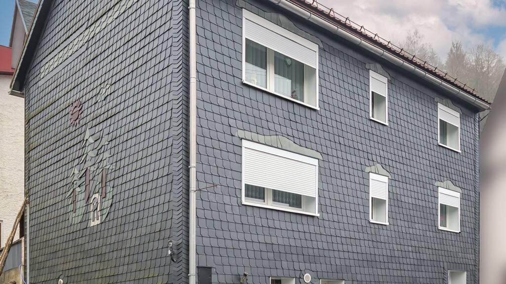 2011: Außenfassadendämmung (100 mm Vorhangfassade),neue Schieferverkleidung, neue Außenfensterbänke
